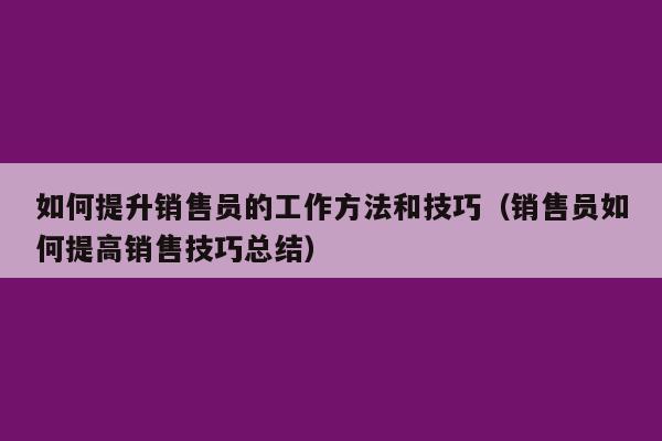 1、销售员提高销售能力需要:经常参加系统培训,也会提高自己的销售能力,不管是单位组织的,还是自己自愿参与的培训,都是提高销售能力的一种方式。